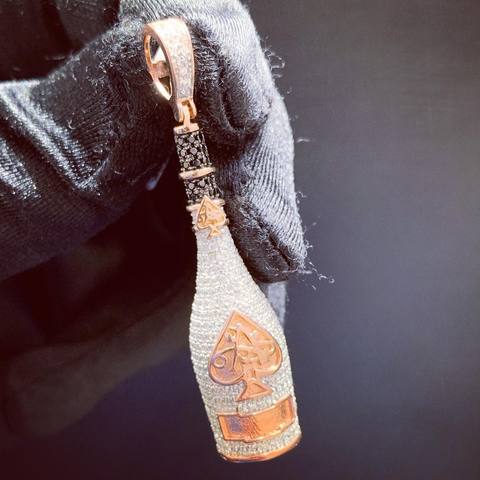 Bán buôn icedout hip hop rượu sâm banh chai ACE của spades Mặt dây chuyền 925 Bạc phim hoạt hình moissanite Vòng cổ trang sức thời trang quyến rũ